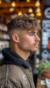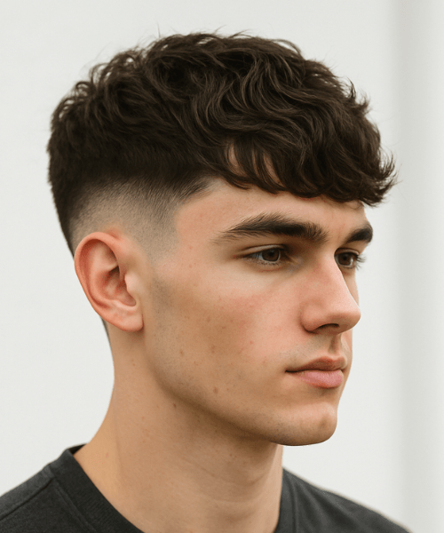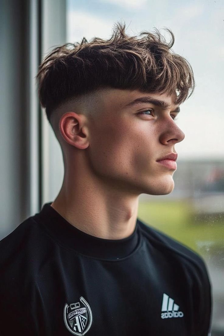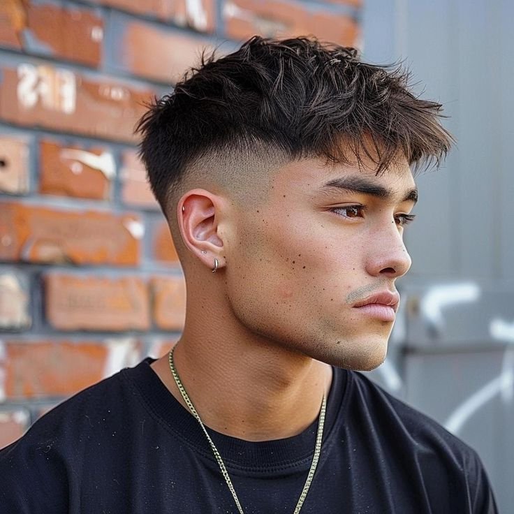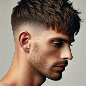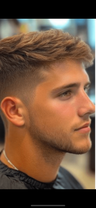 La coupe casquette se distingue par un dégagement net des contours, où la tonte en contour à ras ou en dégradé très court souligne avec précision l’architecture du visage. Le choix technique du fade ou skin fade sur les côtés accentue cet effet graphique, renforcé par une longueur conservée sur la zone vertex, laissant place à un volume travaillé.